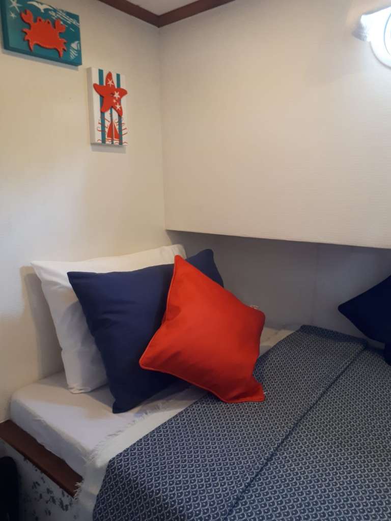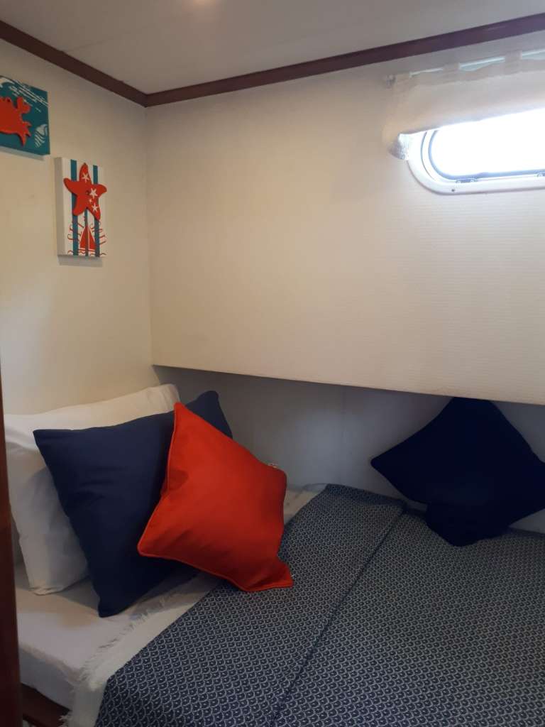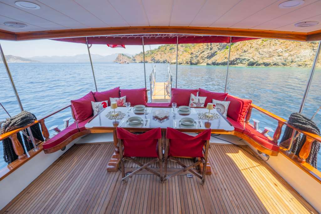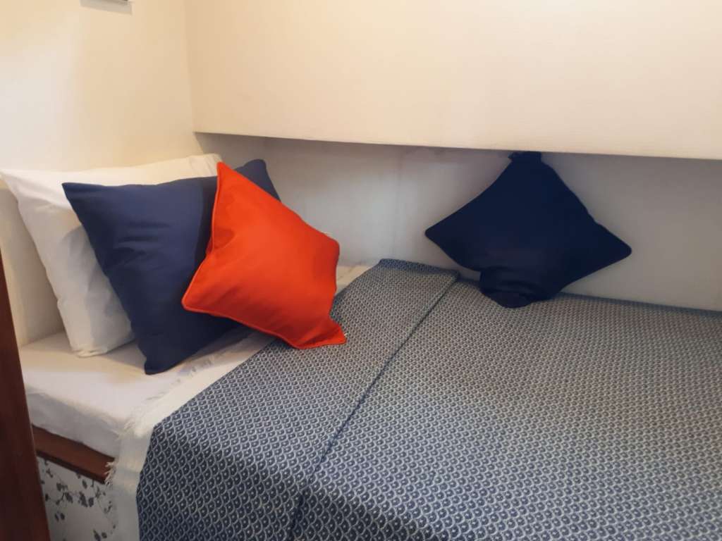 Length: 12 Meters Year Built: 2020 Cabins: 2 (1 master, 1 double) No air conditioning. Captain + deckhand (no crew cabin) Our boat, built in 2020, is 12 meters long, has 2 cabins, and will be the preferred choice for discerning guests of up to 4 people. There is 1 captain and 1 chef/deckhand.