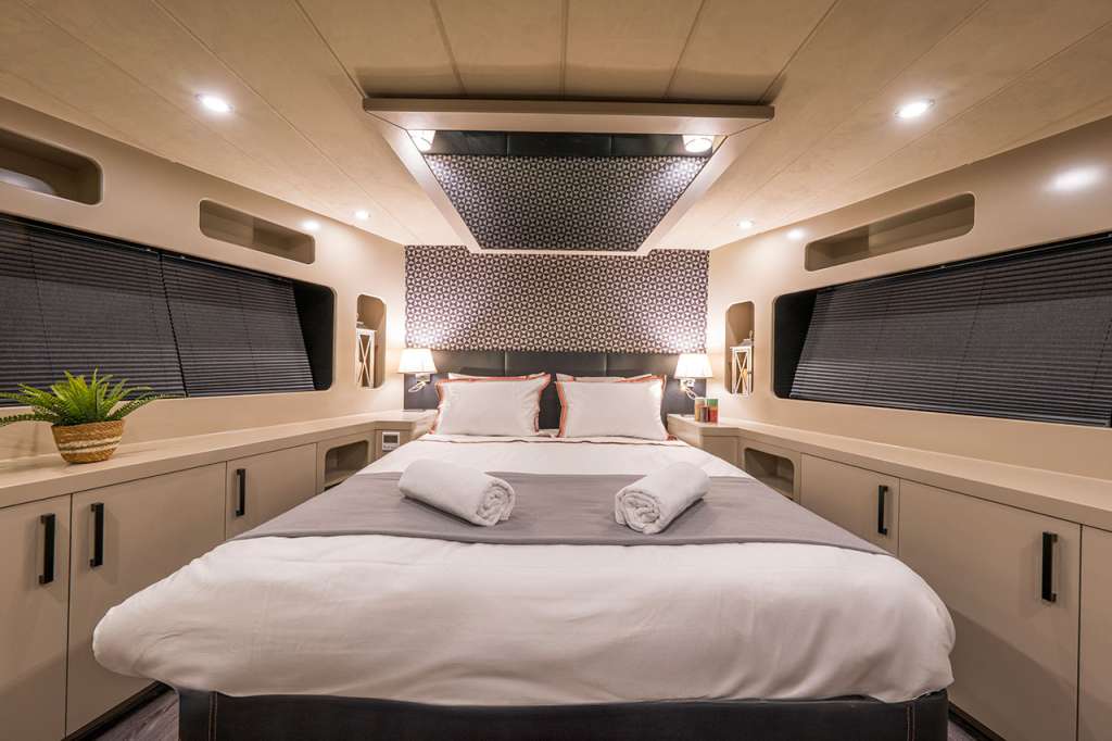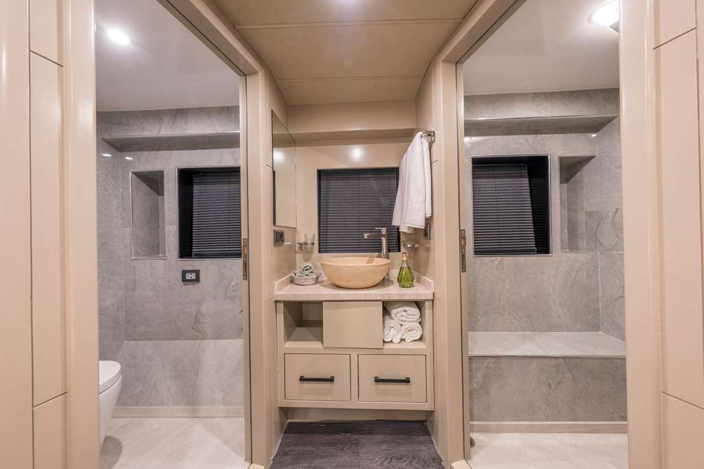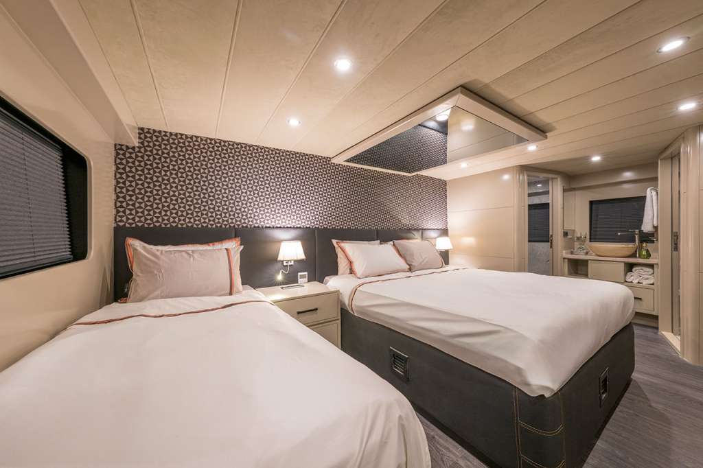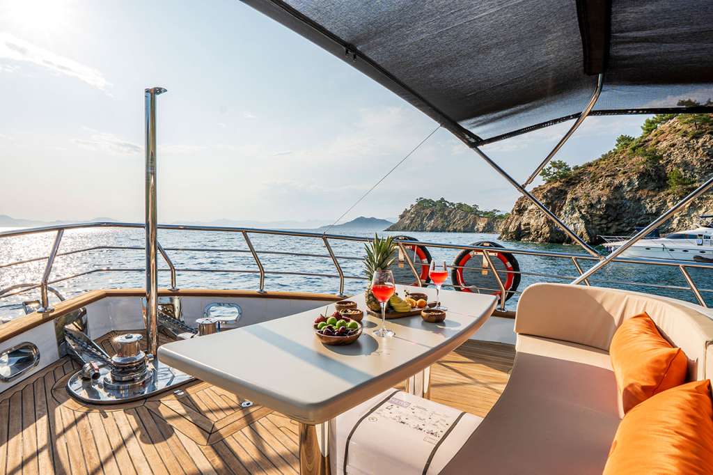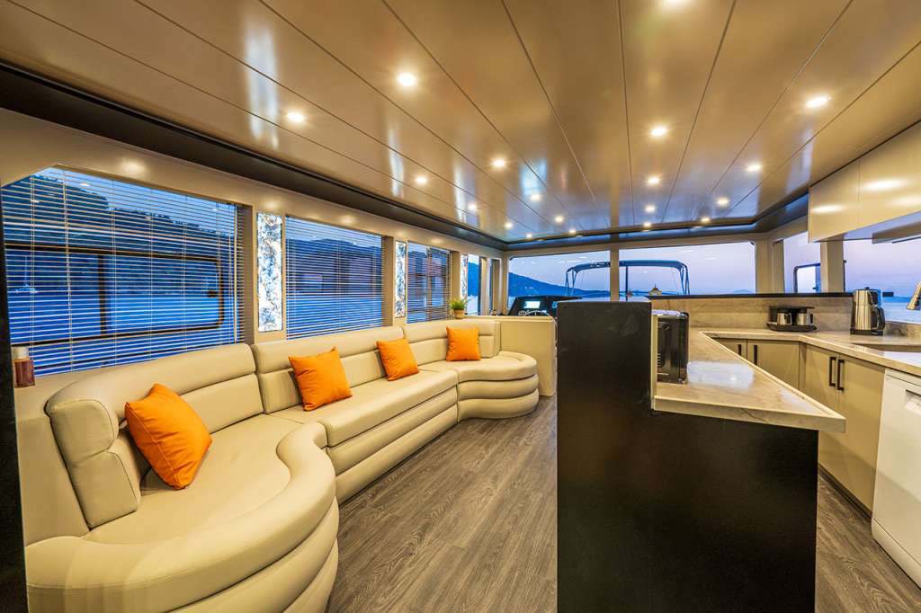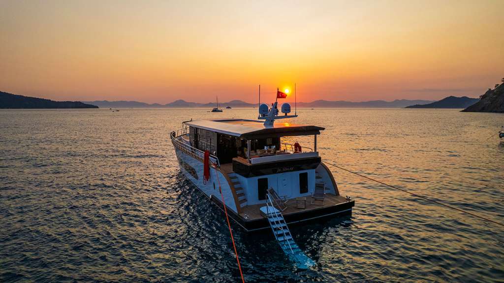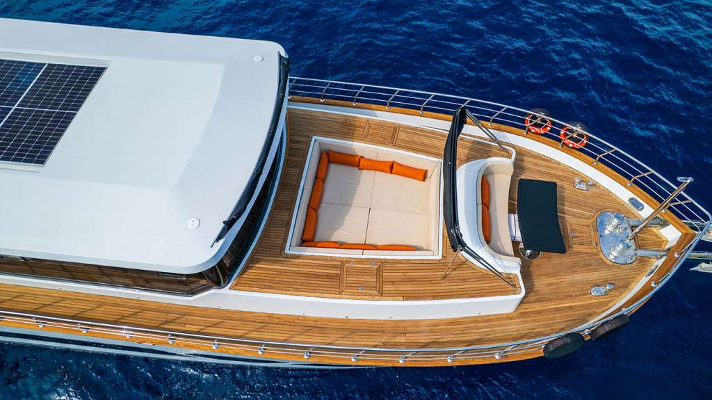 Built in 2025, this lobster-style trawler stands out with its elegant design and functionality. This special boat, 21 meters long and 6 meters wide, offers an ideal holiday experience for small groups and families. Our boat is equipped with a variety of water sports equipment for guests who love to spend time at sea: Canoe Ringo Water ski Paddleboard Lounge Bar, lounge and dining table, comfortable seating area, modern and classic furniture, fully equipped Gallery Fully equipped Cabins / Bed / Type 1 Master (1 double bed / 1 single bed), 1 Double, 1 Triple (1 double bed / 1 single bed) Bathroom In each cabin Toilet In each cabin Staff cabin Yes Music system Yes