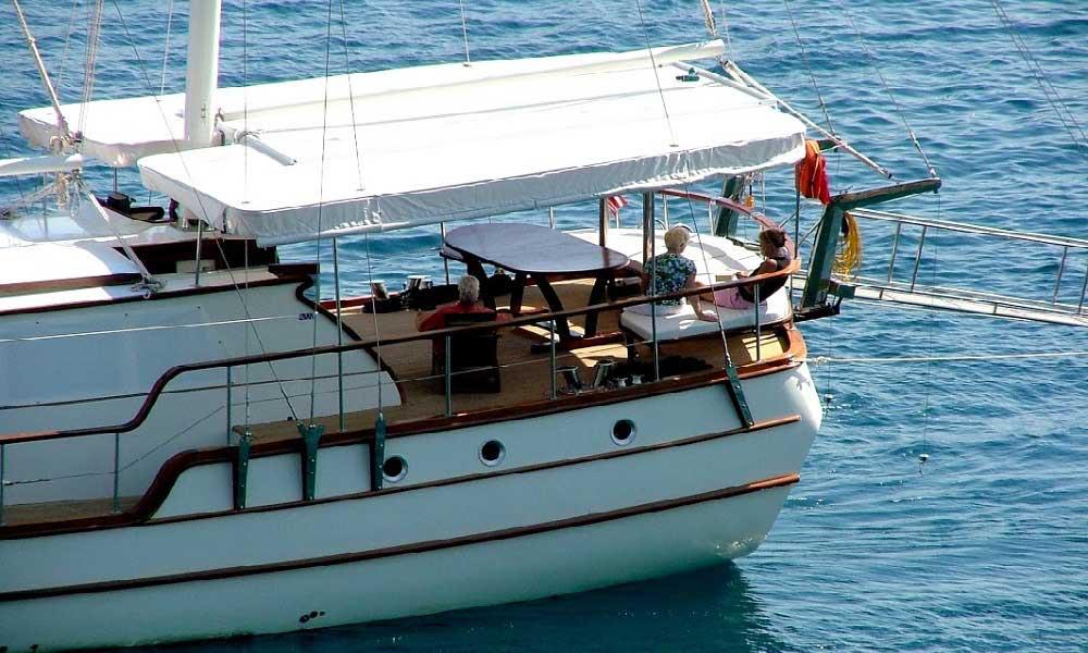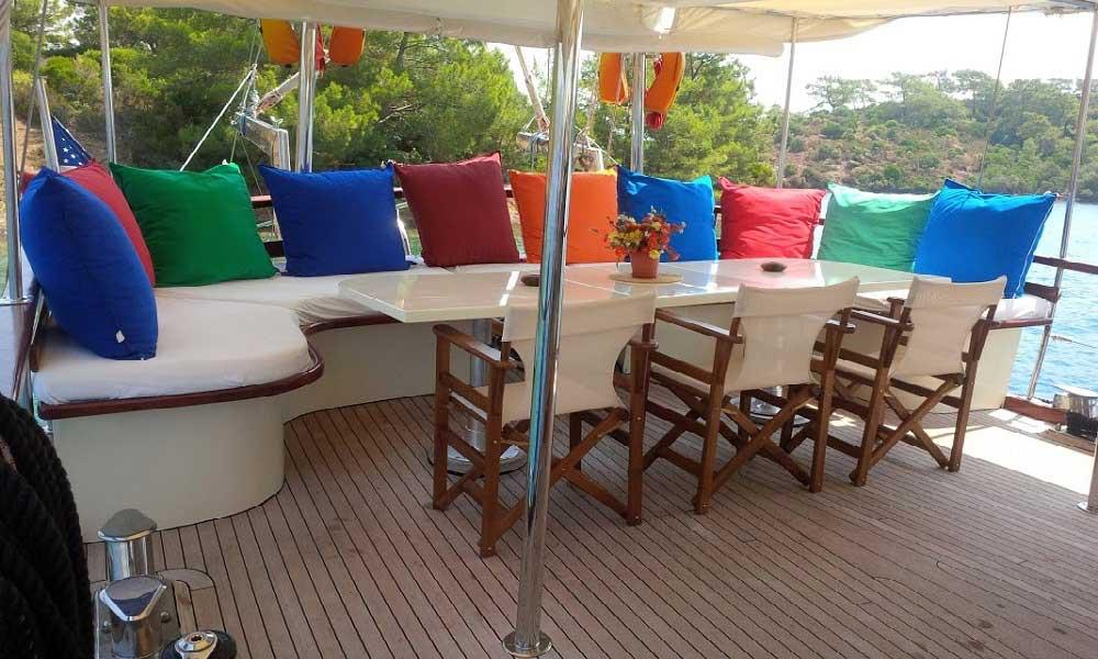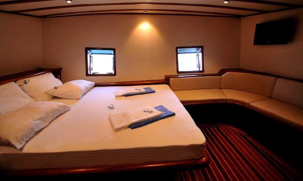 Built in 2011, our gulet departs from Fethiye harbor and serves the Göcek bays and Ölüdeniz region. Our gulet has three cabins: two masters and one double. With a capacity of 8 guests, our gulet is 20 meters long and 5.5 meters wide.