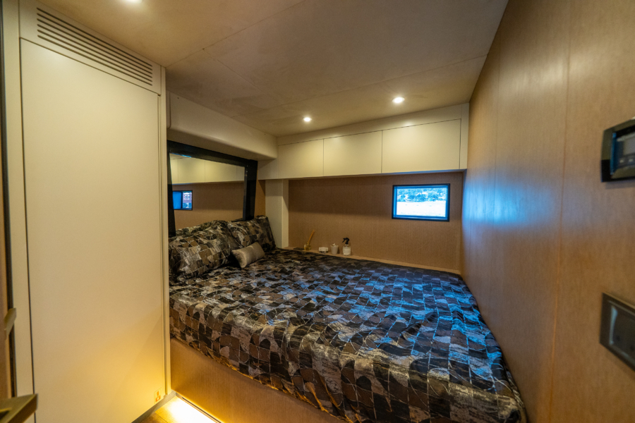 With its 18.5-meter hull and robust design, it offers an exceptional yachting experience. Equipped with twin Volvo Penta D8 diesel engines producing a total of 1200 horsepower, this luxury yacht reaches a cruising speed of 24 knots and a maximum speed of 26 knots, delivering both safety and exhilarating performance.