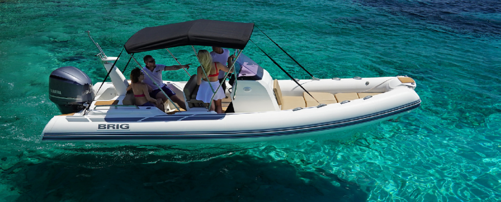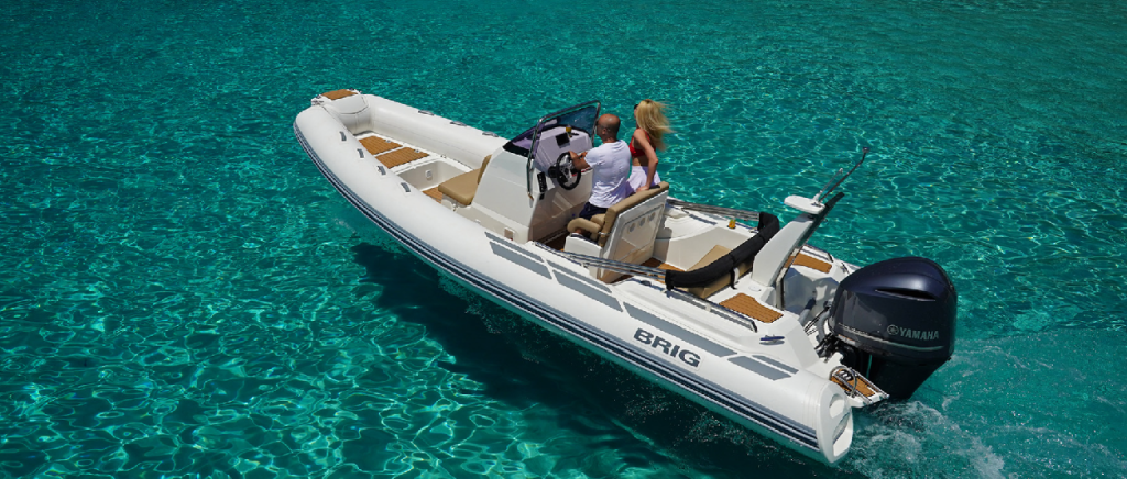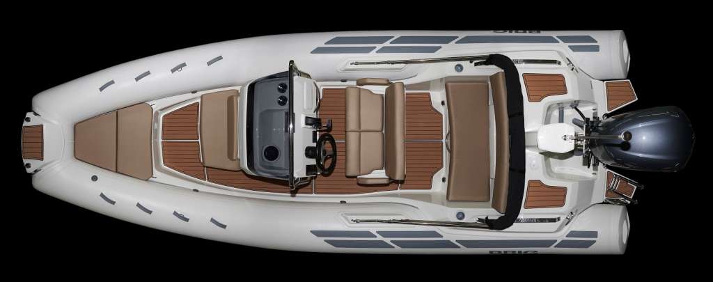 The BRIG E6.7 is already equipped with an instrument carrier, bow gear, bowsprit, Eagle’s typical, practical rear steps made of GRP, and many other features. The 6.7’s steering is conveniently controlled via the windshield, control panel, and control console. The mechanical steering can be optionally replaced with a particularly adaptable hydraulic steering. Although suitable for families, the Eagle 6.7’s passengers are not dissuaded from cruising. The 225 hp engine and 200 L fuel tank ensure that the boat moves forward well.