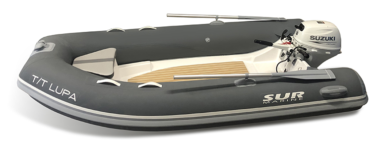 The performance of the “Gamma ET” tenders is ensured by long, covered keels. The colors of the pipes, upholstery, handles, and perimeter strips are customizable. New options such as teak handlebars and side footrests are now available.