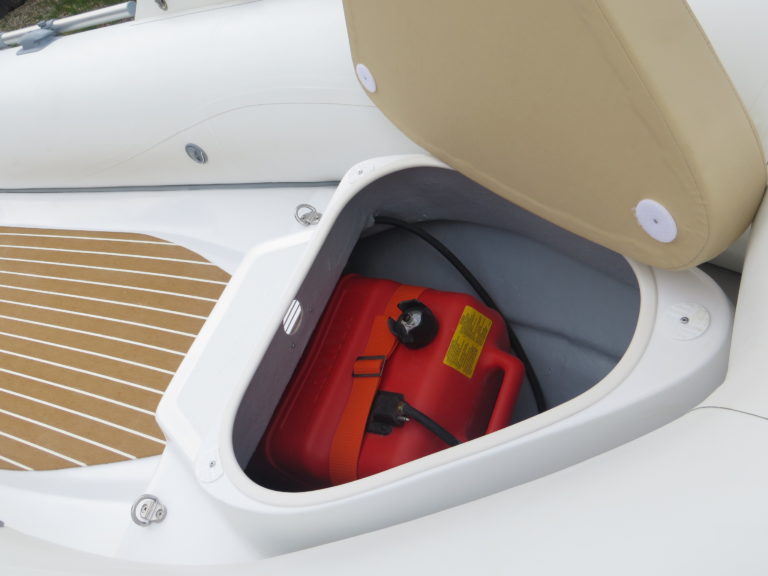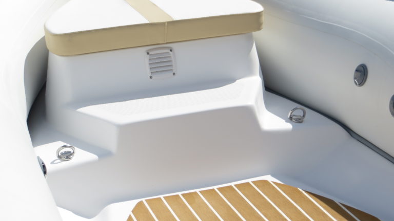 Our goal wasn’t just to create an “OPEN” service boat; we couldn’t resist adding some details to make navigation more comfortable: on the upper models, the bow seat conceals the fuel tank, and the EASY 370 also features a battery compartment at the stern.