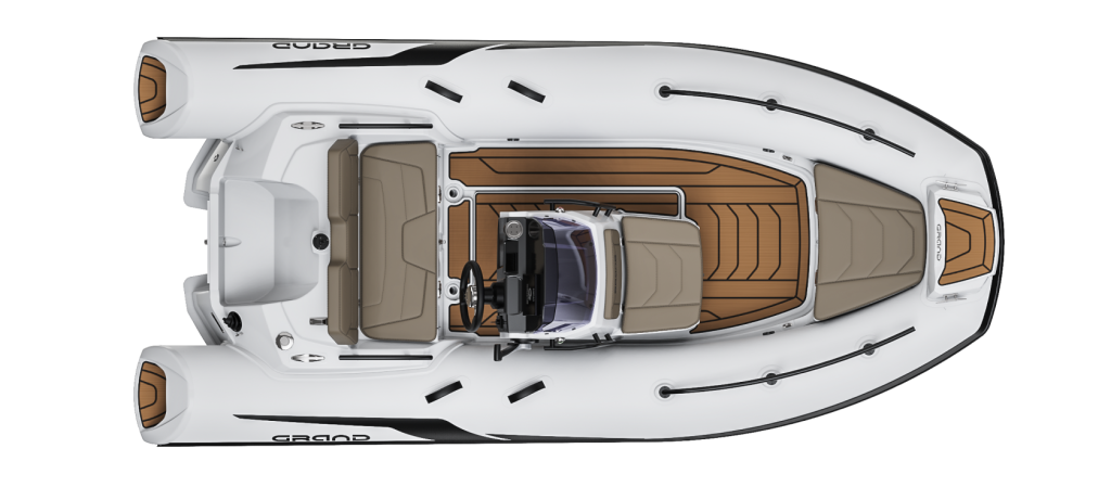 Equally at home as both a high-spec tender and a mid-size family boat. One of our most popular models, the G420 Golden Line follows the established GRAND contemporary design philosophy with a sleek, sporty look and streamlined lines. While filling a significant gap in the mid-size luxury tender market, this model, with its classic layout, performs equally well as a high-spec family boat. The proven High Step Hull design provides excellent maneuverability combined with dynamic stability and impressive speed. Safety rails are fitted as standard to the port and starboard sides of the ergonomically designed pilot/passenger seats and helm console. Stainless steel bow rails are also available as an option. As with all models in the Golden Line Series, the G420 is equipped with a comprehensive standard equipment list and a wide range of accessories, including a 55-litre onboard fuel tank, which extends the boat’s range and adds to its unique individuality.