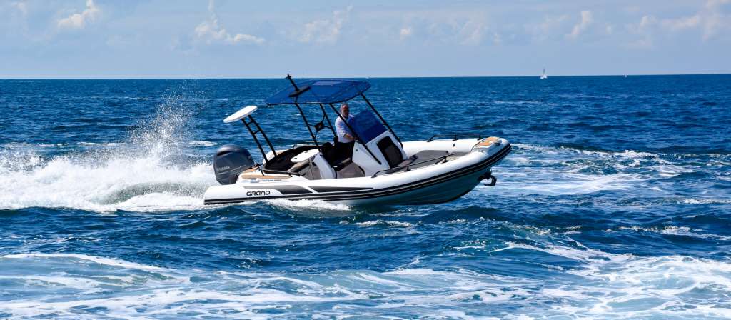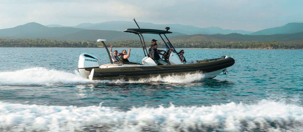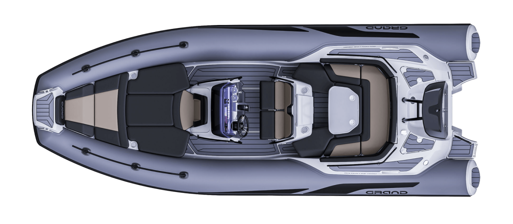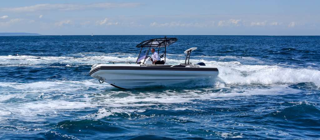 Fresh and smart. Our new 6.8 m/22 ft rigid-hulled inflatable boat with an engine up to 200 hp. Launched in late 2023, the G680 is a mid-size centre console RIB that combines our classic style with sophisticated and thoughtful design, delivering a complete modern cruising experience. Featuring a large fridge-freezer, freshwater system with sink, and absolutely enormous sun loungers, this is a functional, spacious, and luxurious RHIB boat for pleasure. Discover true comfort and peaceful boating inside.