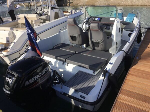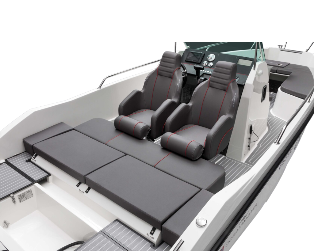 The new Oceanmaster 605 Series was launched at the Lillestrom Boat Show in Norway with the 605 Sport. It features seating for six, hidden console heads, a forward sundeck and picnic table, a sundeck-convertible aft bench, twin sport helm seats with full convertible covers, and a single-step performance hull with a spray-top. It’s an 800kg boat that can accommodate outboard engines up to 150hp.