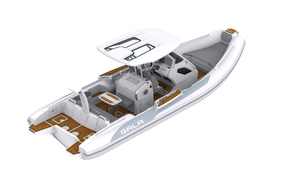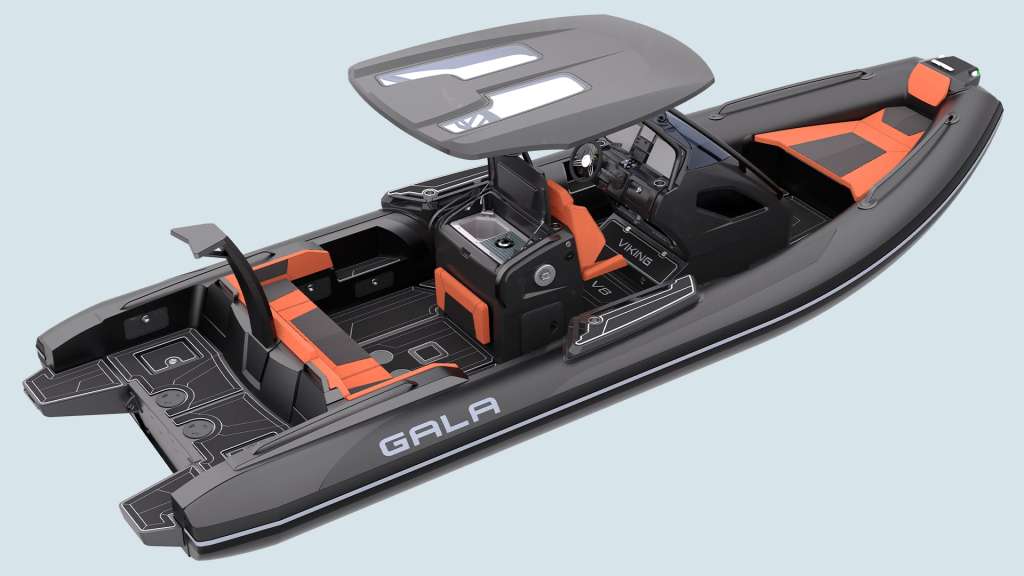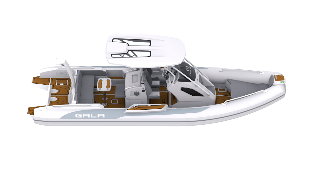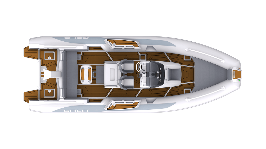 GALA VIKING V8 – New for 2024. This incredible yacht combines genuine craftsmanship, quality materials from top manufacturers, and cutting-edge technologies. The VIKING V8 is a special version that impresses with its comfort concept. It features a practical C-23 console with a forward seat, an integrated WC (optional), a comfortable S-24 driver’s seat, and a galley. There’s the option of installing two sun decks at the stern and bow. It’s the ideal boat for family holidays or group excursions.