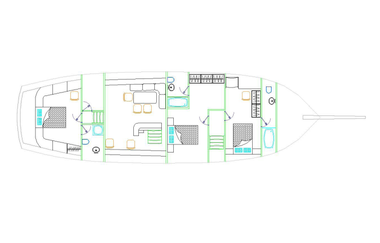 Наш обновлённый в 2019 году роскошный катер длиной 22 метра предлагает превосходный сервис для ваших морских путешествий с тремя удобными мастер-каютами, парусным оборудованием площадью 250 м² и опытной командой из трёх человек. При благоприятных погодных условиях возможно также парусное плавание.