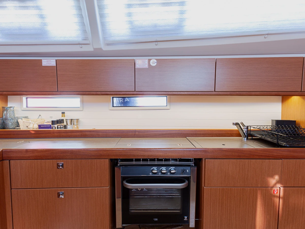 Geniş ve çift dümenli kokpit, kullanım kolaylığı ve sosyallik sağlar. Kokpitte büyük bir masa ve oturma alanı vardır.