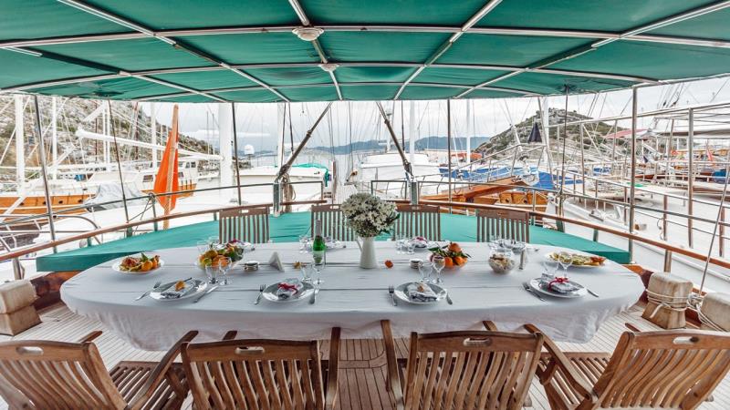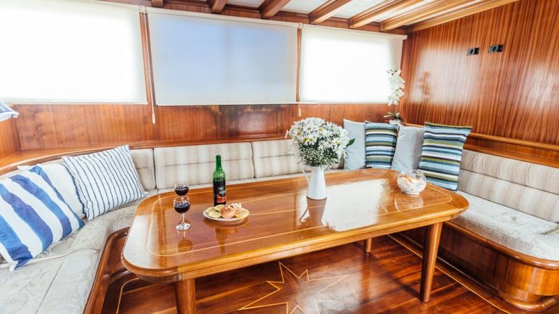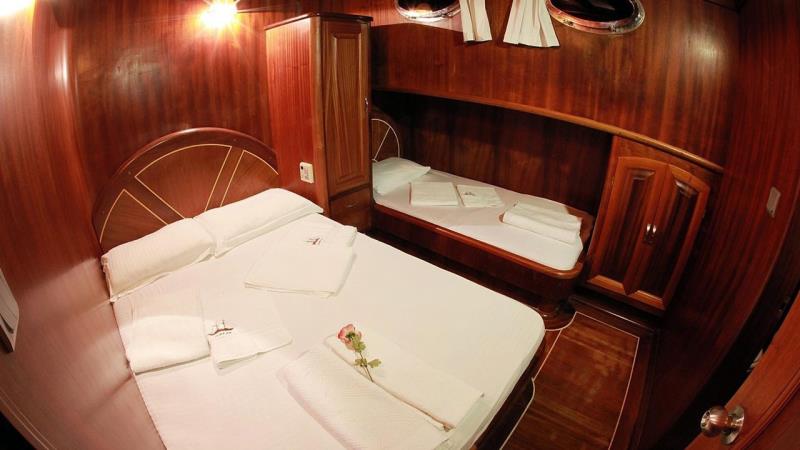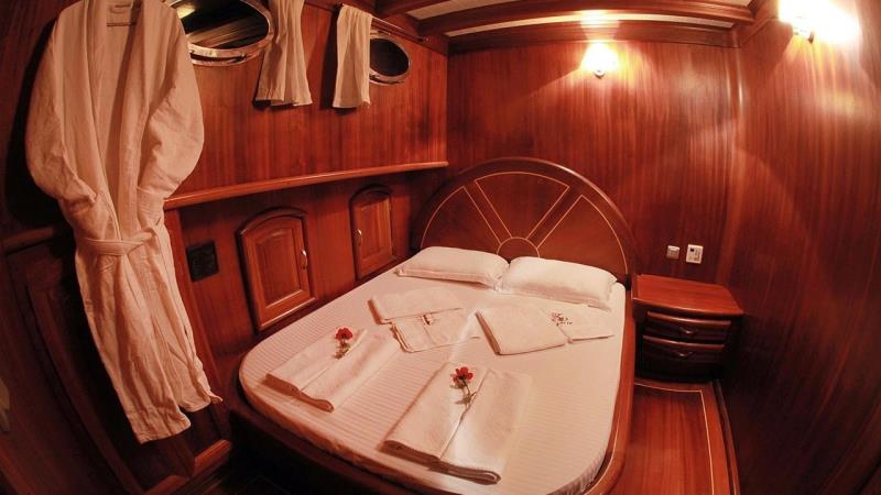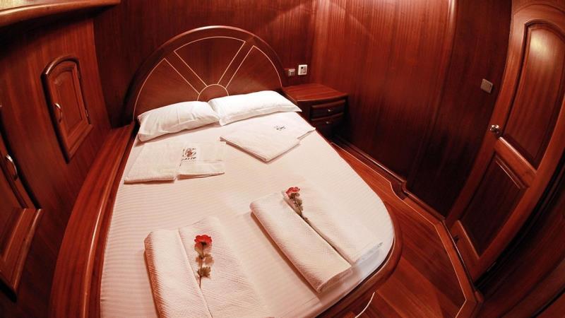 30 metre uzunluğu ve 7,30 metre genişliği ile bu ahşap gövdeli şaheser, geniş alan ve zamansız bir çekicilik sunar. 2006 yılında inşa edilen ve 2018 yılında özenle yenilenen teknemiz, klasik işçiliği modern konforla birleştirerek rahatlık ve stil mükemmel bir uyum sağlar. Geniş düzeni, 5 çift kişilik kabin ve 1 ikiz kabin olmak üzere 6 kabinde 12 misafire kadar konaklama imkanı sunar. Tüm kabinler klimalı ve bir ses sistemi ile donatılmıştır, gerçek bir lüks deneyim sunar.