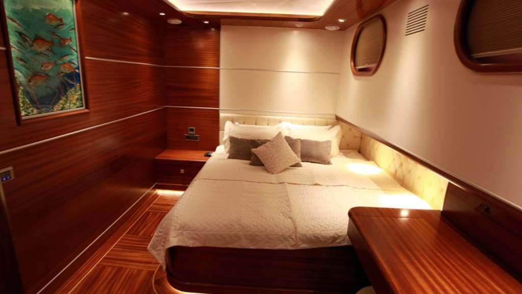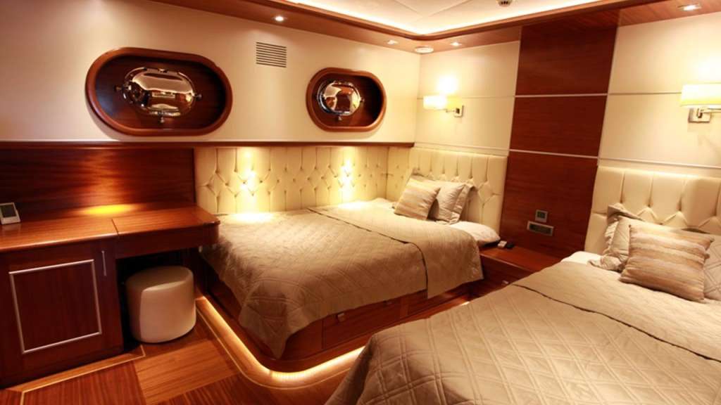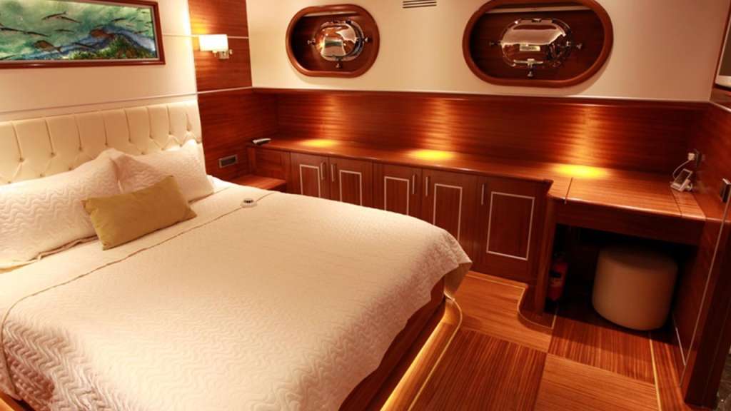 | Notlar | Kabin / Yatak / Tip 2 master, 2 double, 2 twin Banyo Her kabinde duşakabin Tuvalet Her kabinde ev tipi Personel Kabini Var Müzik Sistemi Kabinler, salon ve güvertede TV-Uydu Salon ve kabinlerde Elektrik 220 V, 24 V. Klima Var 24 Saat – Gece Klima Kullanımı Uygun Su OyuncaklarıJet ski (ücrete dahil değildir), su kayağı, kano, ringo, banana, wakeboard. |