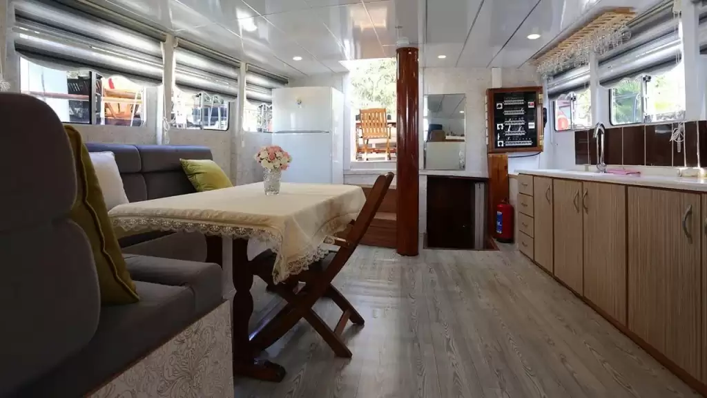 2017 yılında yenilenen 19 metrelik gulet, Bozburun’ un eşsiz sularında 8 kişilik konforlu bir tatil sunuyor. 4 çift kişilik kabini, klima ve buz yapıcı gibi modern konfor ekipmanlarıyla donatılmıştır.