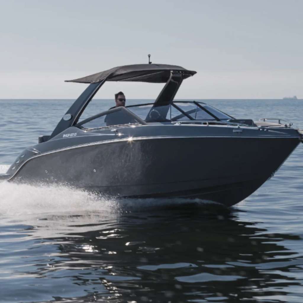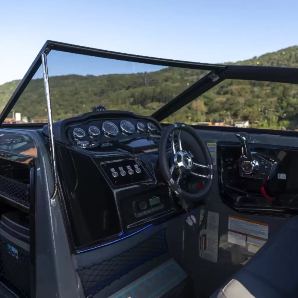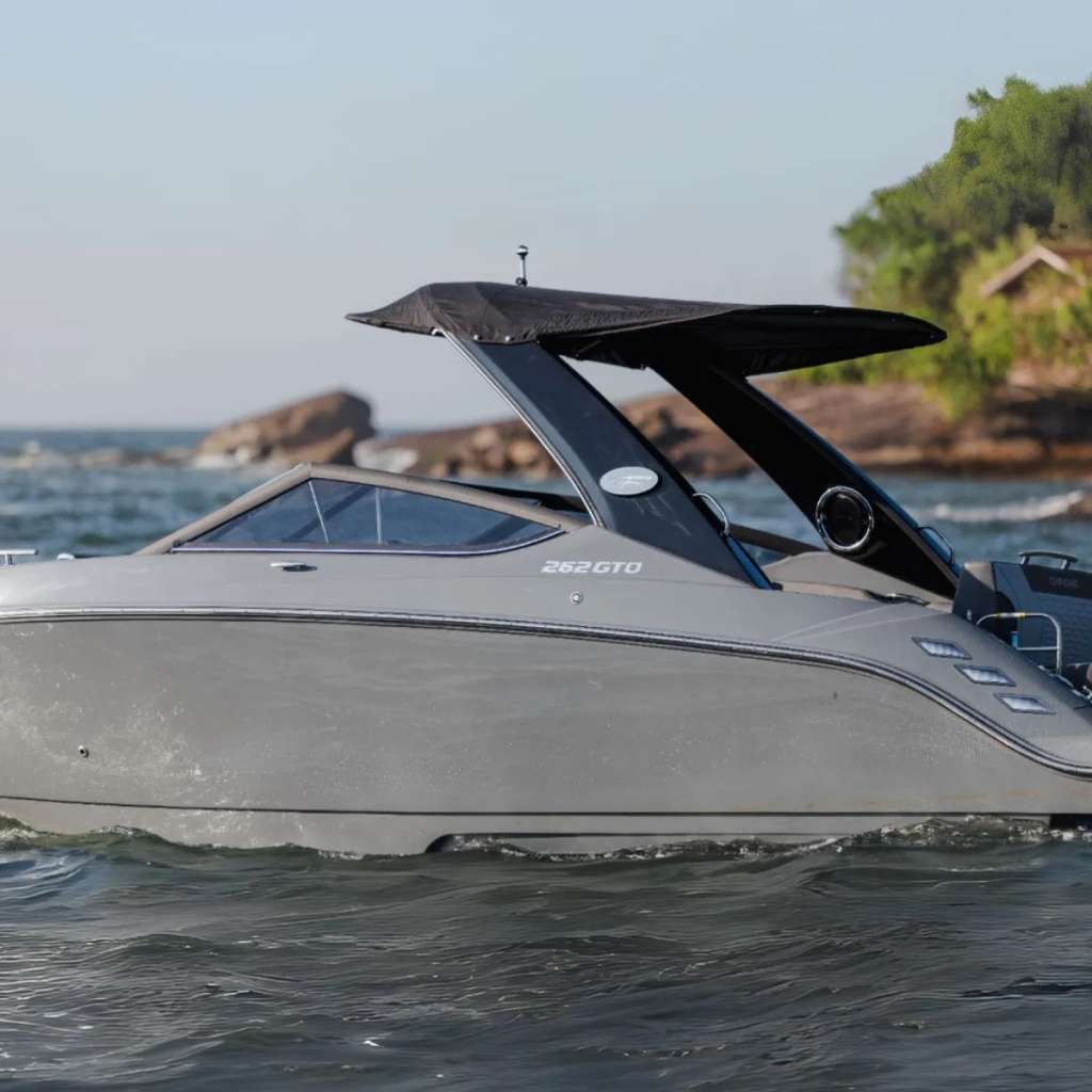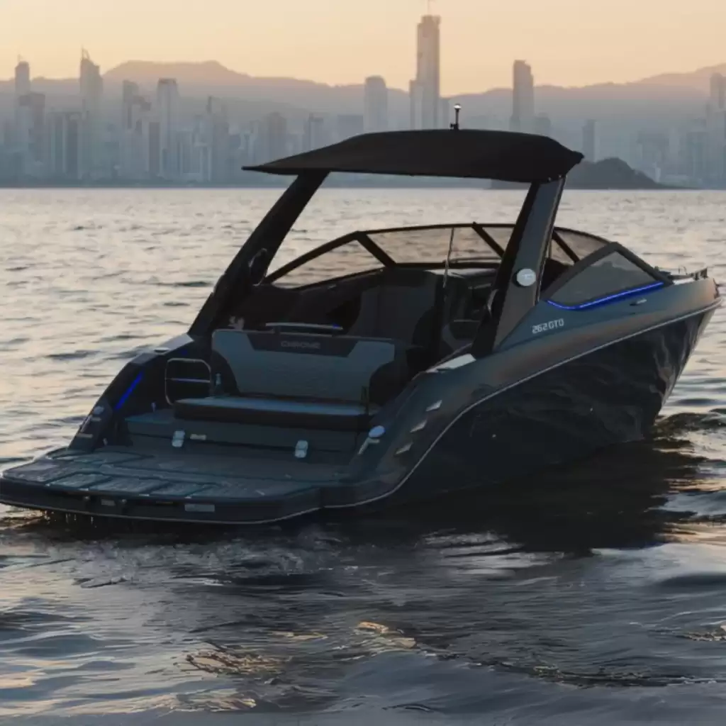 CHROME versiyonundaki Fibrafort 262 GTO, taş grisi gövde ve güverteye sahipken, modernlik ve sportifliğin yanı sıra son derece seçkin detaylarla dolu tanınmış bir model.