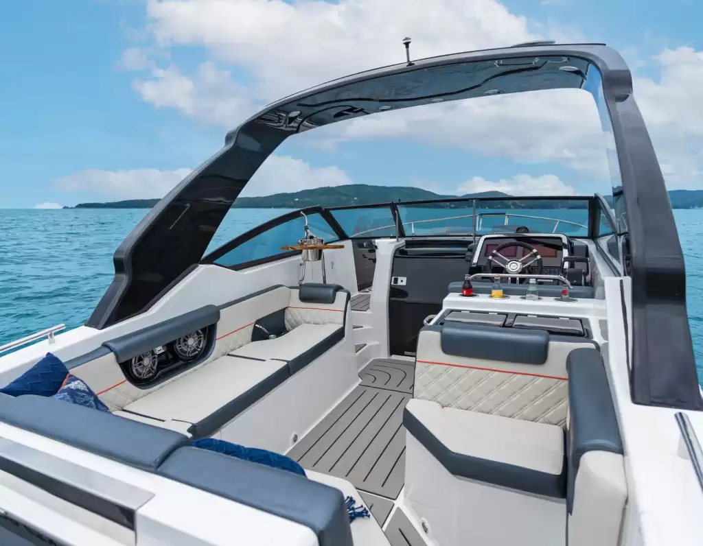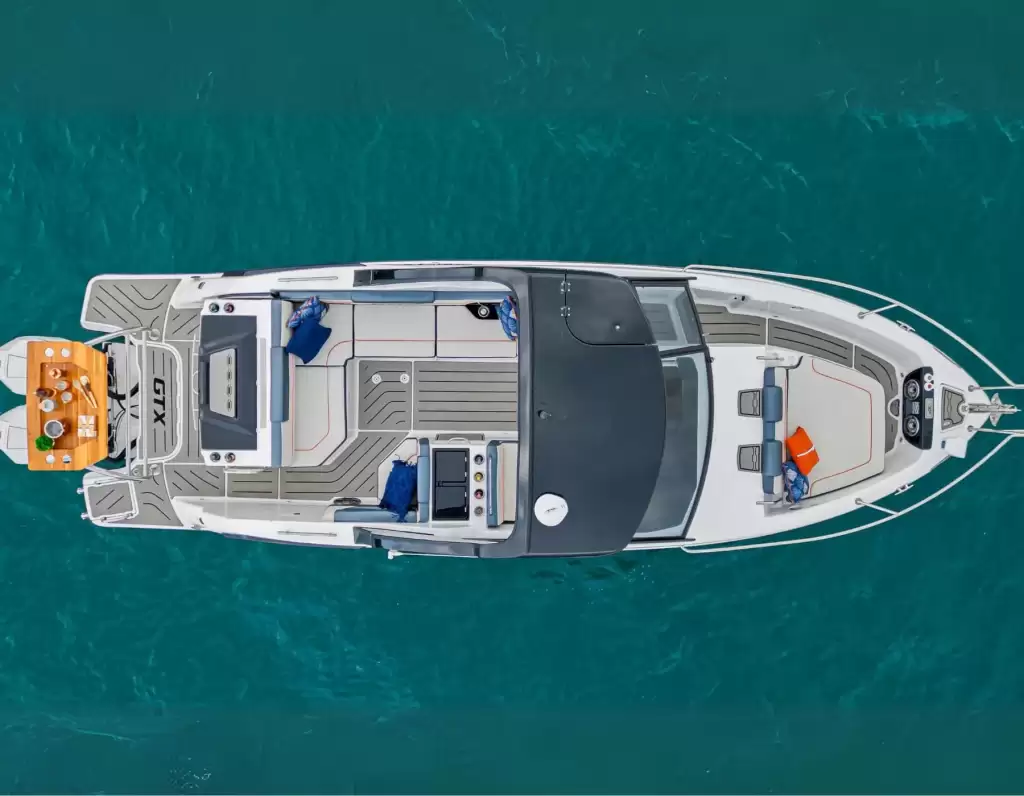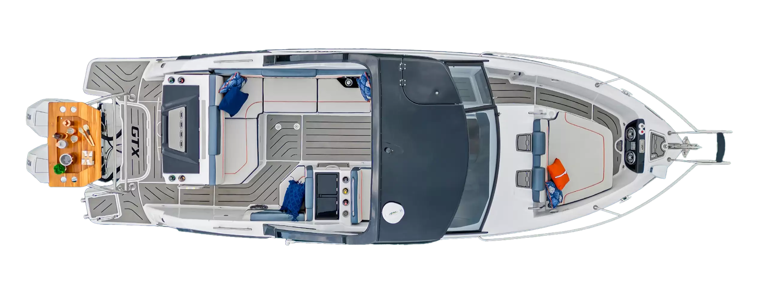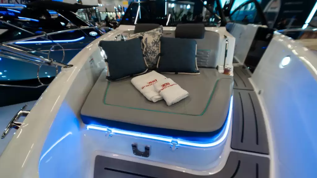 300 GTX’in erişilebilir alçaltılmış pruvasında yüzünüzde rüzgarı hissedin. Bu bölümde bir ses konsolu, bol miktarda korkuluk ve örnek güvenlik düşünülerek tasarlanmış bir geçit bulunur.