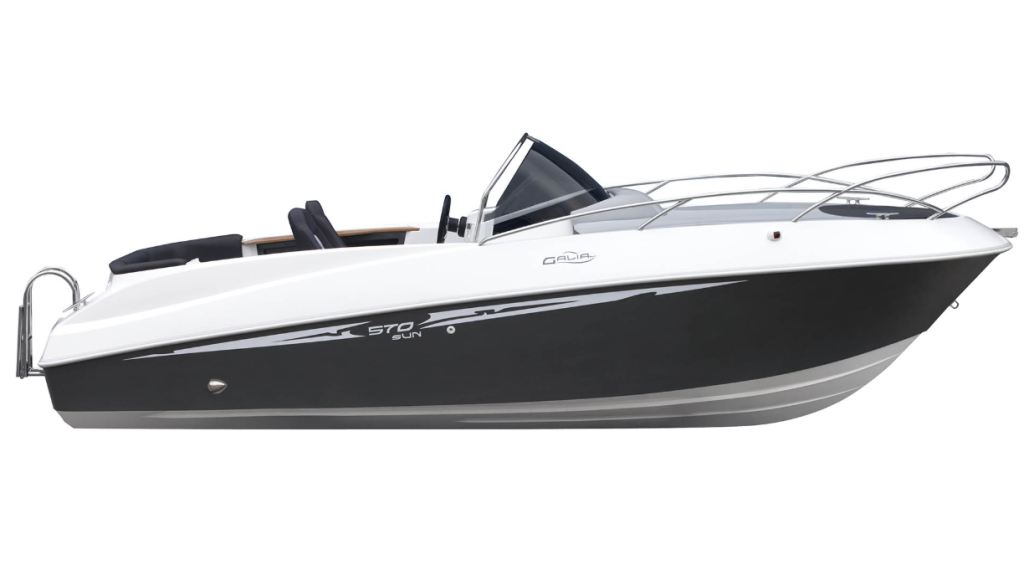 Galia 570 Sundeck dinamik, sportif özelliklere sahip olmasına rağmen tam uzunlukta, geniş bir kabin sunar. Aşağıda iki ranza ve çok fazla depolama alanı bulunur. Kokpitte çift spor koltuklar ve ek bir masa sığdırma seçeneği olan geniş bir kanepe bulunur. Pruva güneşlenme güvertesindeki geniş alan, eğlence ve heyecan arayan herkes için davetkardır.