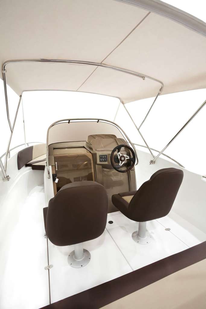 Galia 630 Open, çekici tasarımı, harika kullanımı ve gemide bolca alanıyla her açıdan harika bir performans sergiliyor. Orta konsolun arkasında iki spor koltuk ve bir bank bulunuyor ve bu konsol aynı zamanda depolama için kompakt bir kabin barındırıyor. Ön güverte oturma alanı ve masa, tüm yolcuların keyfini çıkarabileceği geniş ve konforlu bir güneşlenme alanına dönüşüyor.