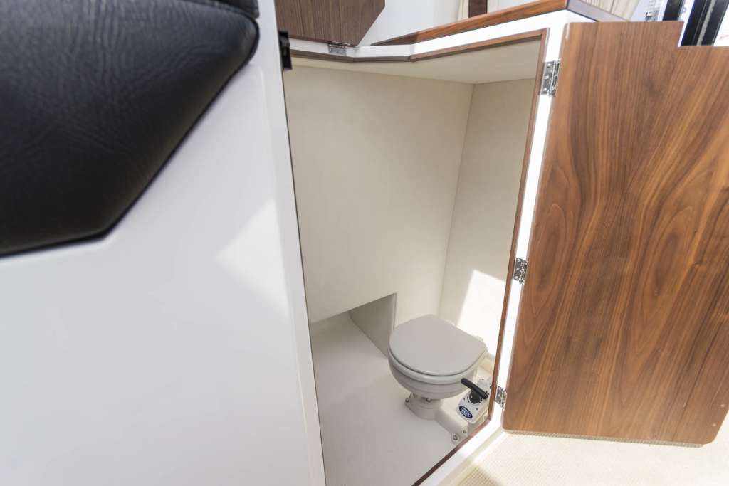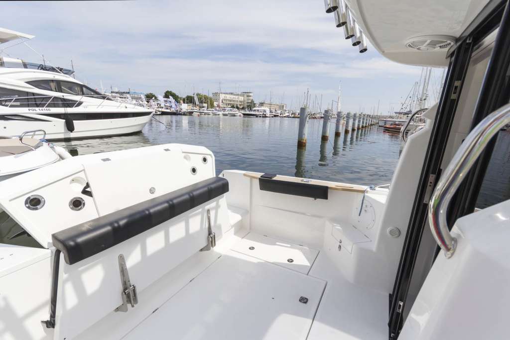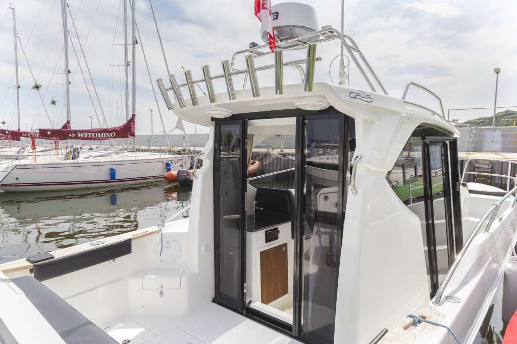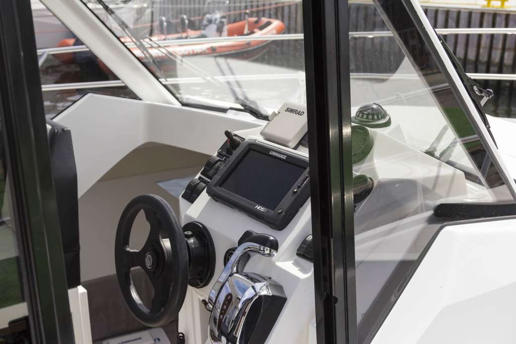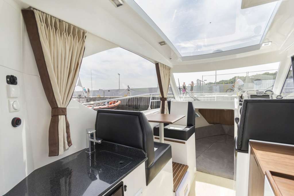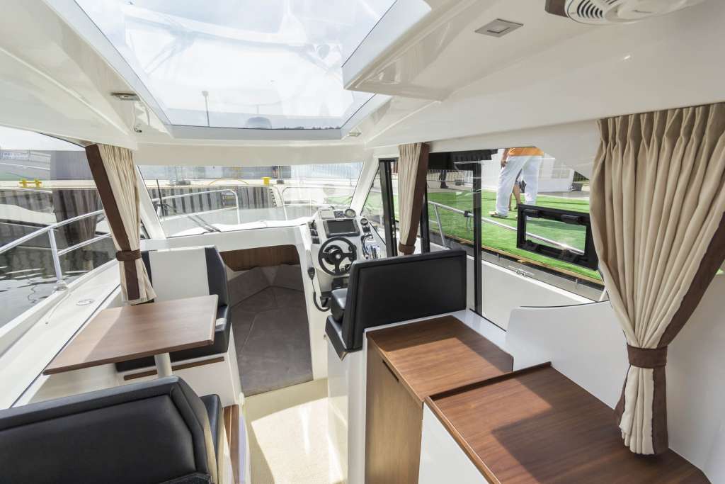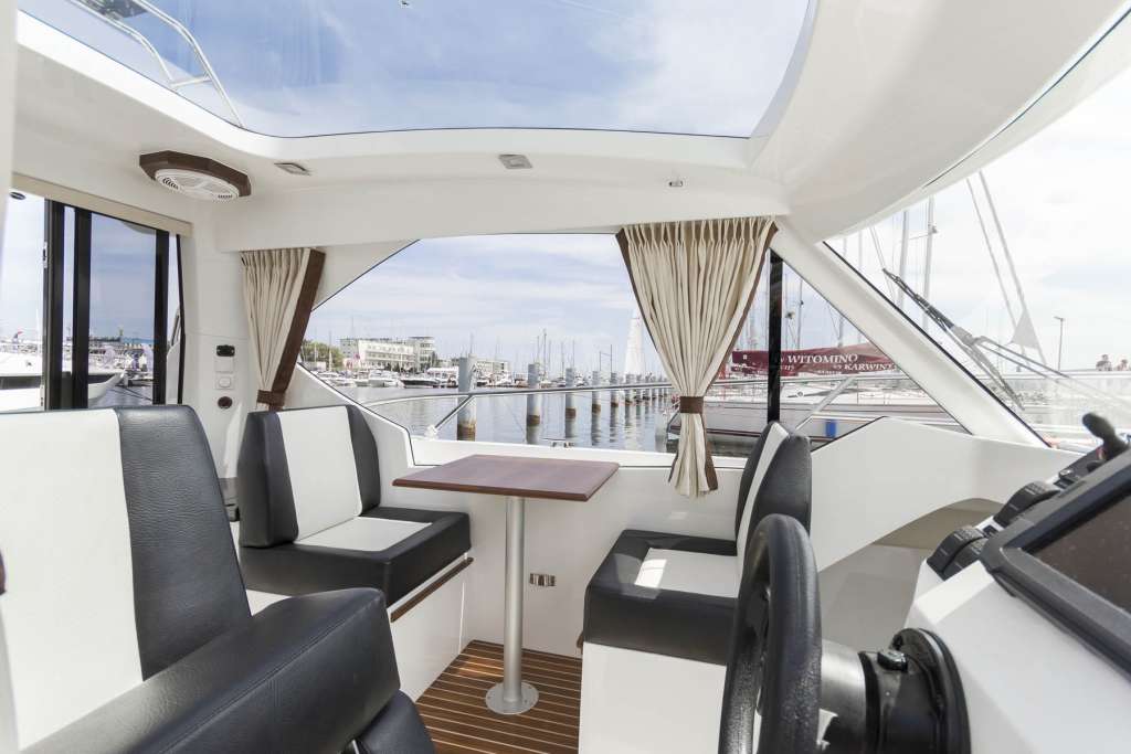 İç mekan pencerelerle ve açılabilir bir kapağı olan şeffaf bir çatı ile çevrilidir. İçeride, iki kişilik açılır kapanır bir masaya sahip bir yemek odası, dümen istasyonu, duşlu banyo ve önde çift kişilik bir yatak bulunmaktadır. Motorbot, çeşitli su ve sıhhi tesisat sistemlerinin yanı sıra navigasyon, trim sekmeleri ve Webasto ısıtma ile donatılabilir.