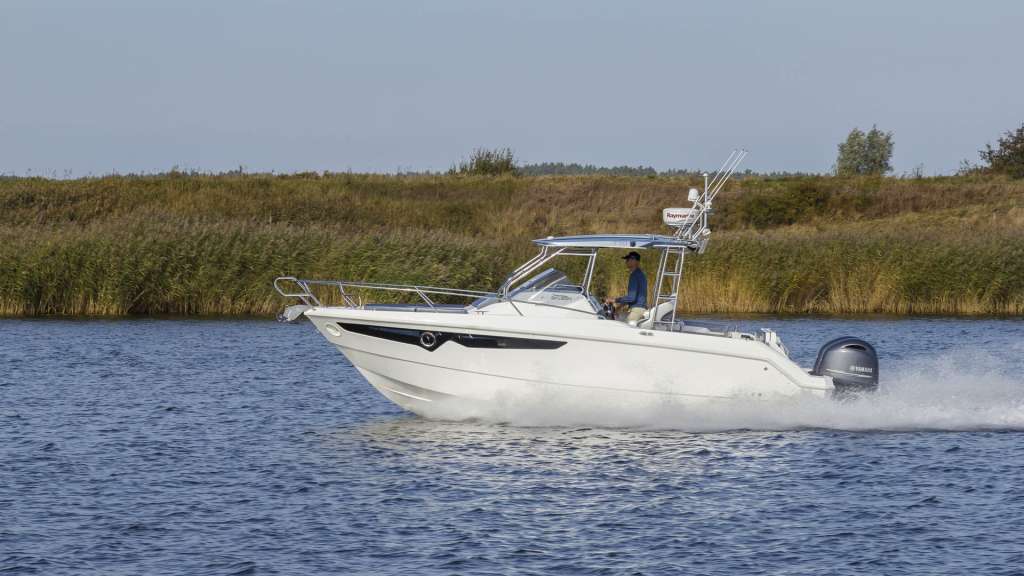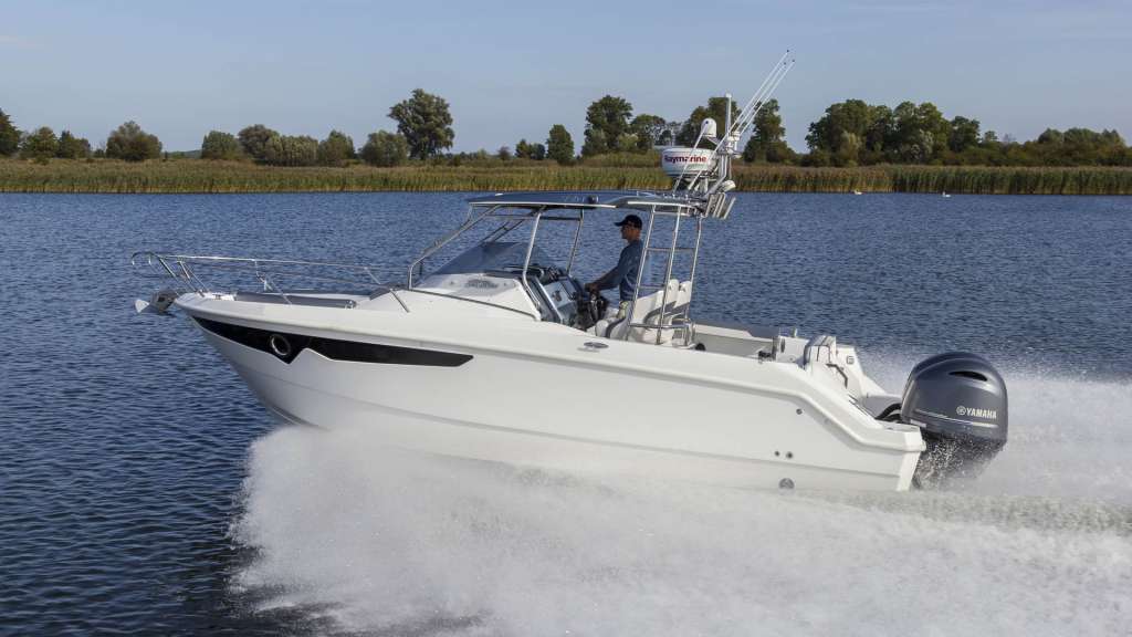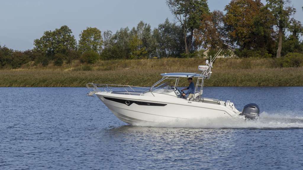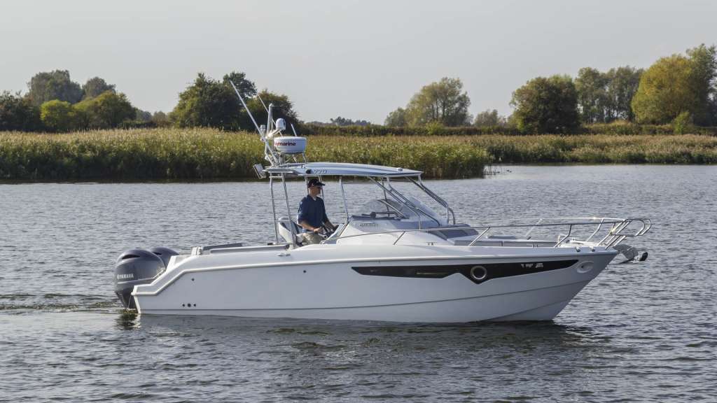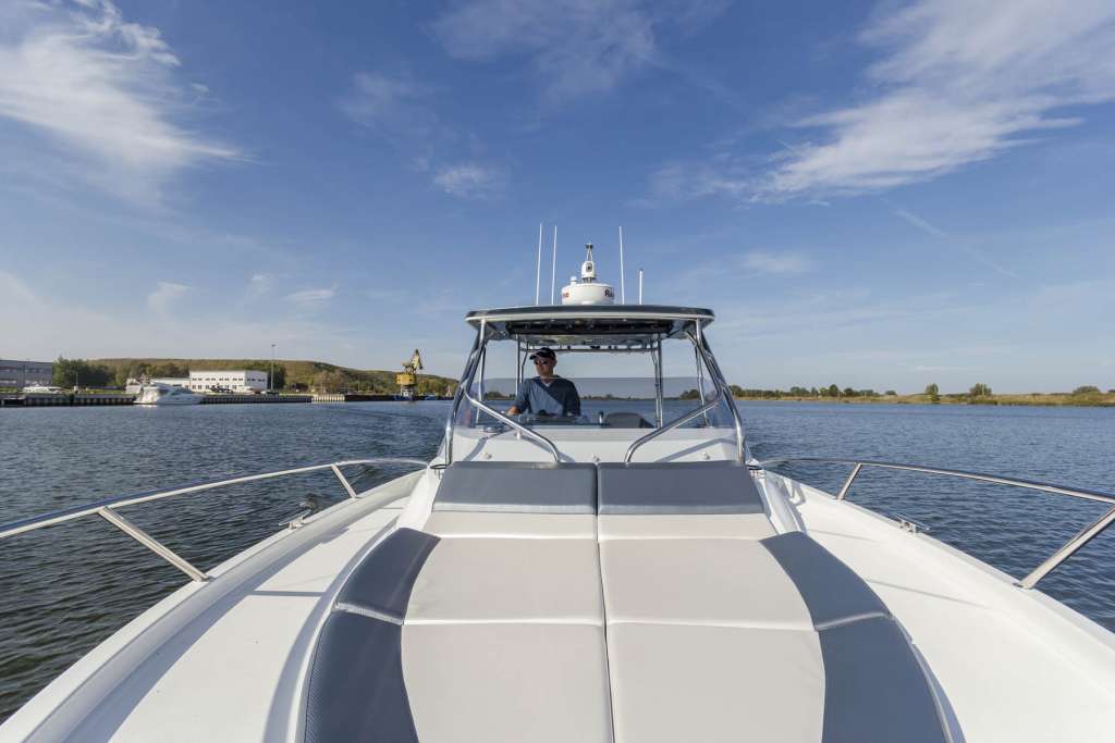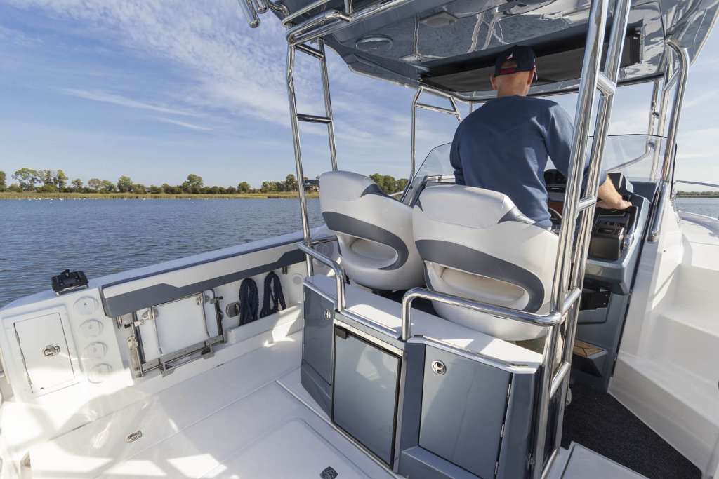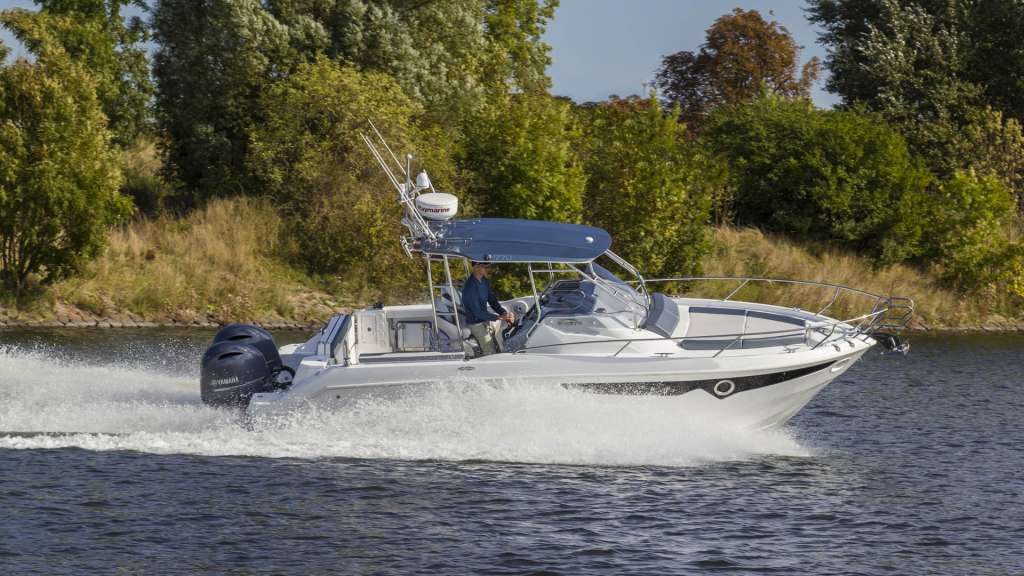 İki spor koltuklu dümen istasyonu mükemmel görüş alanı sunarken, isteğe bağlı ızgara uzun yolculuklarda kullanışlı olacaktır. Alanın altında büyük bir yemek odası, mutfak, sıhhi tesisat sistemli banyo ve ekstra bir yatak bulunmaktadır. Ek donanımlar arasında sert tavanlı bimini, balık kutusu ve çift motor kurulumu bulunur.