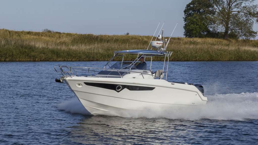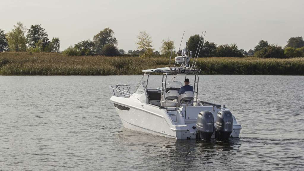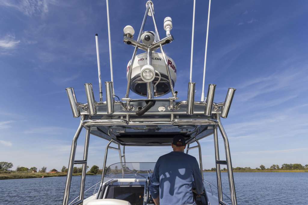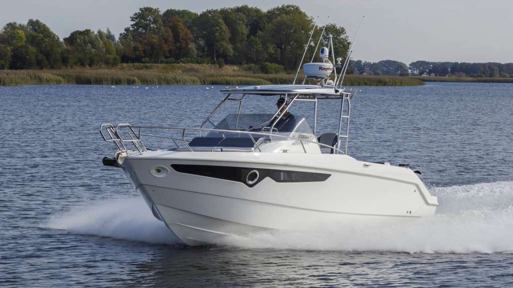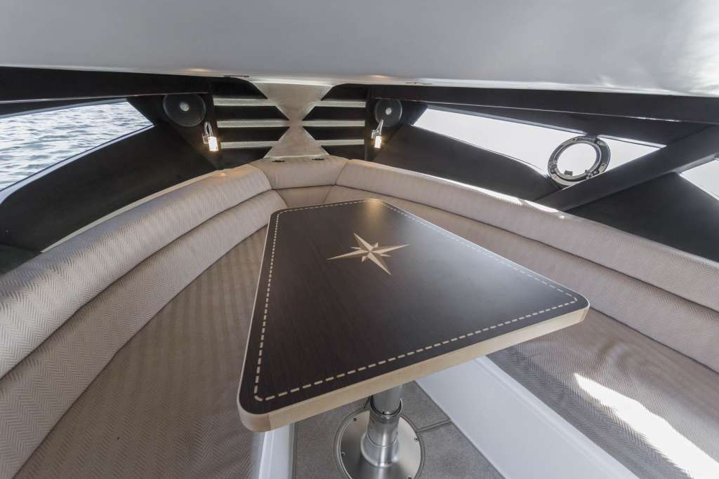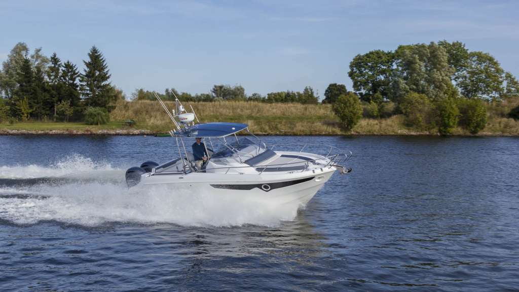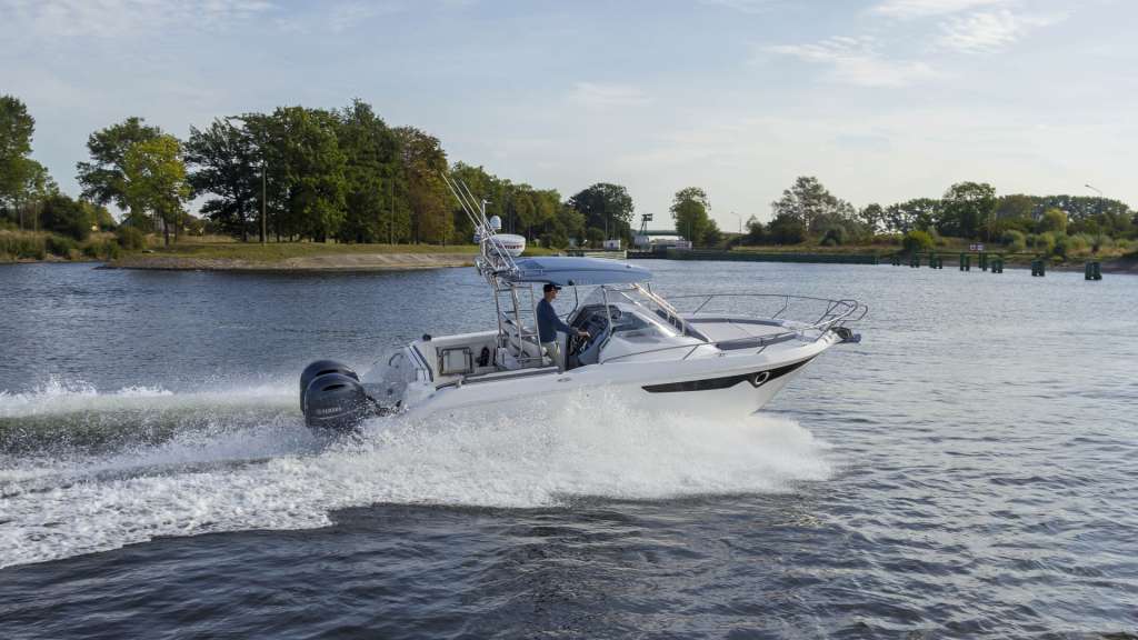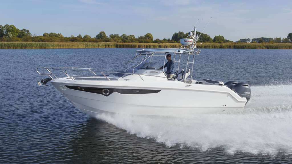 İki spor koltuklu dümen istasyonu mükemmel görüş alanı sunarken, isteğe bağlı ızgara uzun yolculuklarda kullanışlı olacaktır. Alanın altında büyük bir yemek odası, mutfak, sıhhi tesisat sistemli banyo ve ekstra bir yatak bulunmaktadır. Ek donanımlar arasında sert tavanlı bimini, balık kutusu ve çift motor kurulumu bulunur.