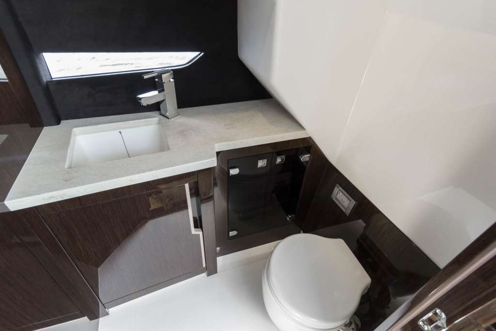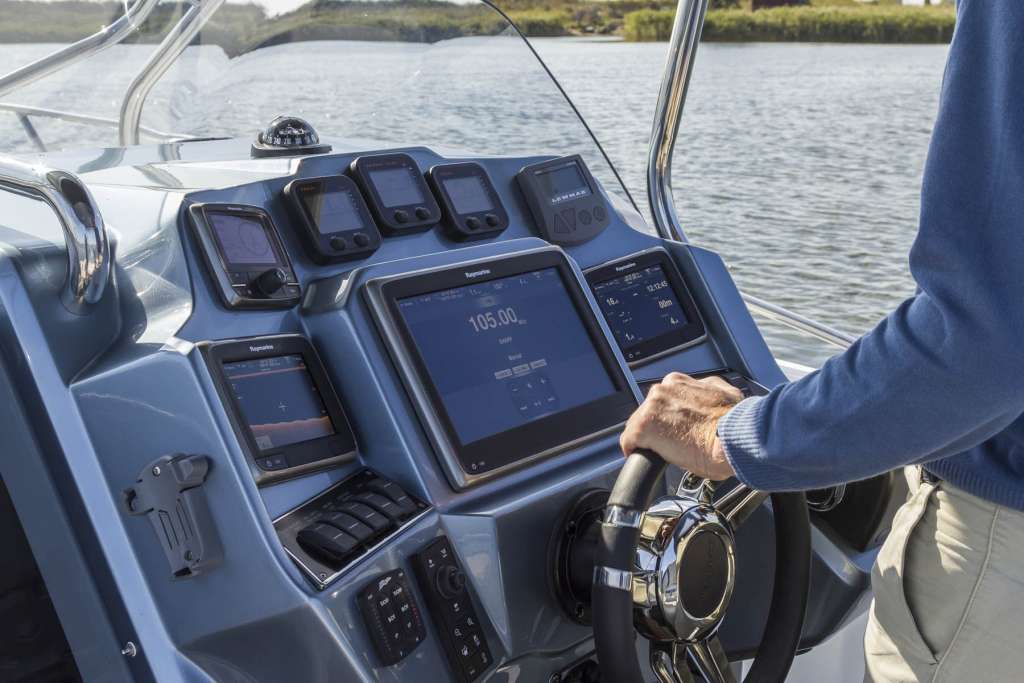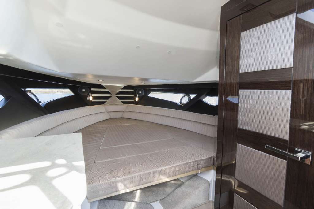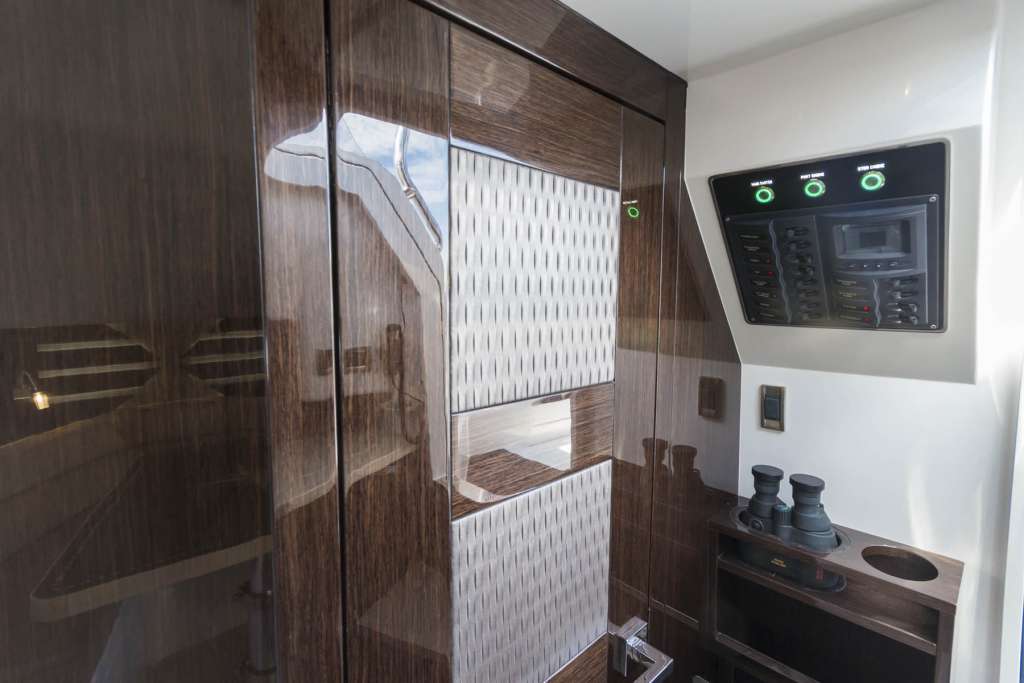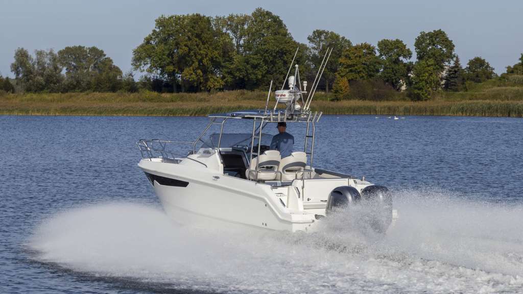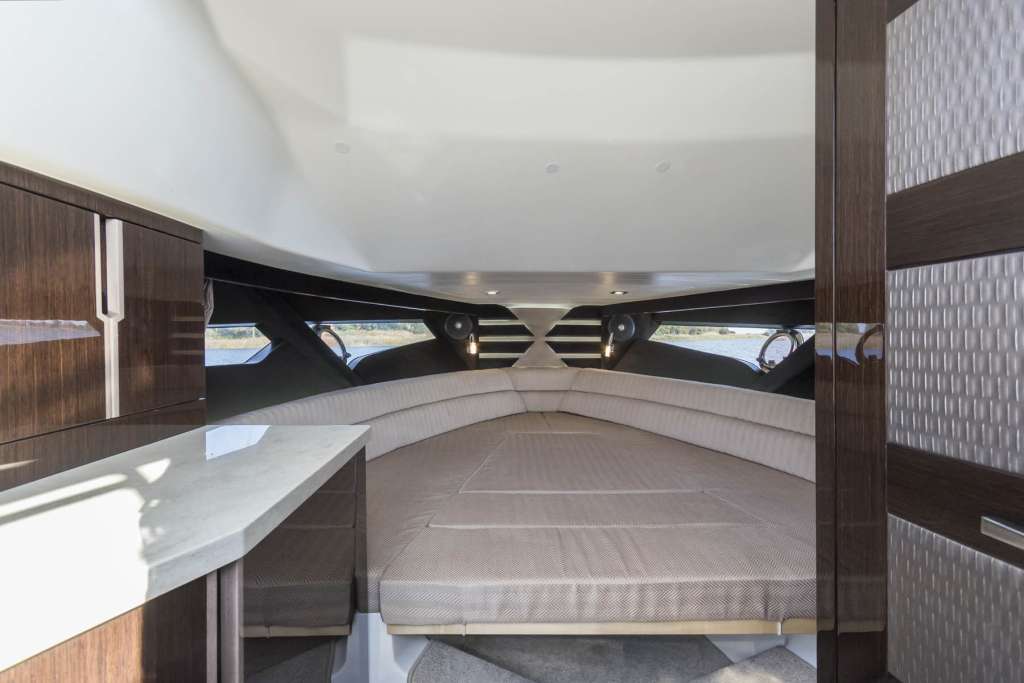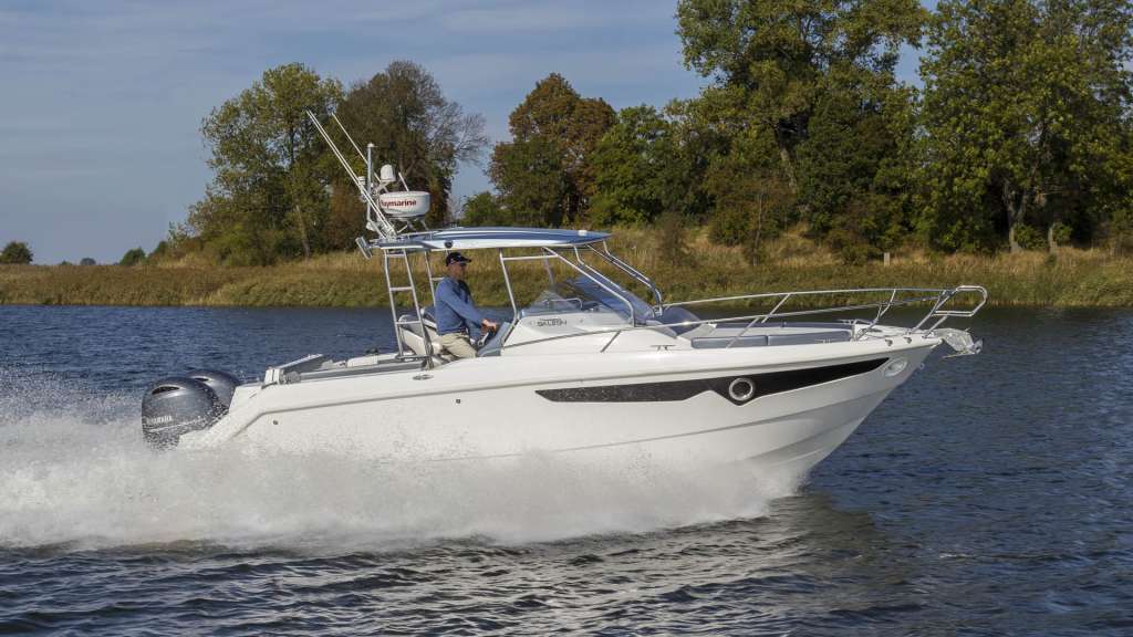 İki spor koltuklu dümen istasyonu mükemmel görüş alanı sunarken, isteğe bağlı ızgara uzun yolculuklarda kullanışlı olacaktır. Alanın altında büyük bir yemek odası, mutfak, sıhhi tesisat sistemli banyo ve ekstra bir yatak bulunmaktadır. Ek donanımlar arasında sert tavanlı bimini, balık kutusu ve çift motor kurulumu bulunur.