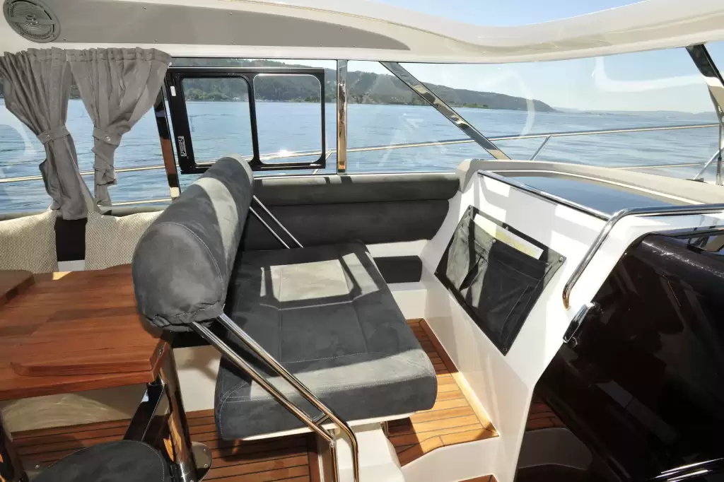 Kullanılabilir alana odaklanan Marex 375, iki büyük yemek alanı sunar. Açık kokpitte veya kapalı salonda 8 arkadaşınız ve ailenizle kendinizi rahat ettirin. Hem kokpit hem de salon masaları dönüştürülebilir ve kolayca genişletilebilir. Ayrıca, geri döndürülebilir yardımcı pilot koltuğu, yemek masası için başka bir koltuk seçeneğini hızla gerçekleştirebilir.